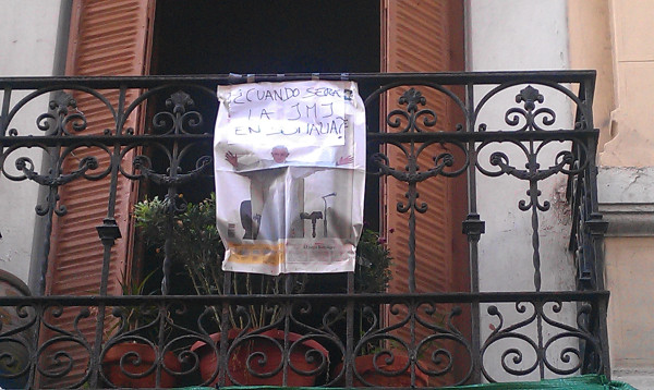 Protesta pacífica contra la JMJ: carteles reivindicativos