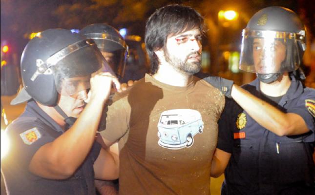 Decenas de policías protegían el parqué madrileño. Dos jóvenes se desnudaron frente a ellos y les pidieron que los dejaran pasar. «Somos el pueblo», decían». La mayoría de los congregados los increparon por su afán de protagonismo.